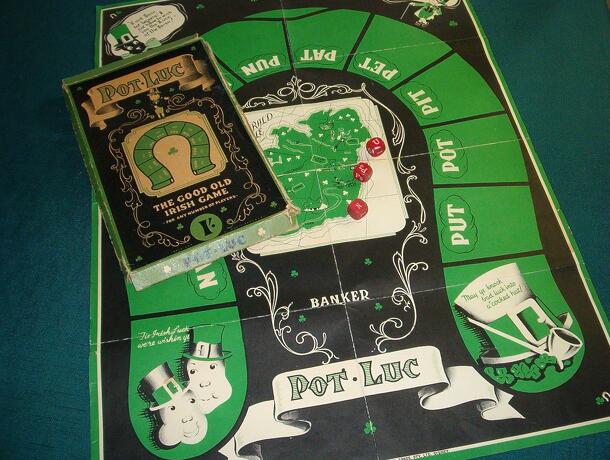 The game box contains a play mat/poster and a set of three six sided dice engraved with letters instead of numbers (except for one that also contains numbers and one other with a blank side). Any number of players may play. The play mat is Irish themed and bears no other impact on the game apart from providing an area where betting chips may be placed. A...