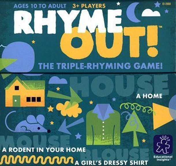 Players take turns drawing cards from the box and reading three clues aloud. The other players try to be the first to answer with three rhyming words that match the clues. For example "1) a home, 2) a rodent in your home, 3) a girl's dressy shirt." Answers: "House, Mouse, Blouse." First player to say the correct answers in order wins the card. First player...