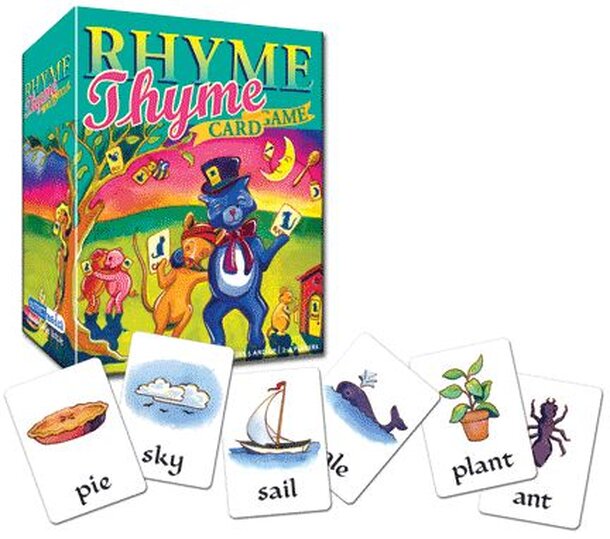 Gameplay in Rhyme Time is simple. Turn six cards from the deck face up so that all players can see the 24 pictures of simple objects on these cards. At the same time, all players start looking for objects whose names rhyme with one another, such as shampoo – kangaroo or doll – ball. Everybody is trying to be the first one to find a pair that rhymes, and...