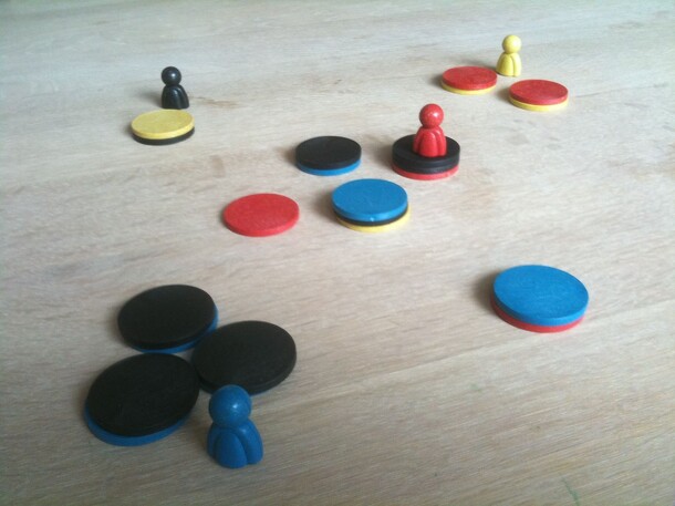 Stacktics is a game where the aim is for players to create 4 stacks of 2 tokens that match their unique reference stack. This is done by building and manipulating stacks of tokens in the centre of the table. In turn players can draw a token from the draw bag to add to the central stacks, or perform a single manipulation, or place their blocking piece to...