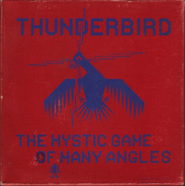 Thunderbird can be played as a competitive game for two (or four as partners,) as a series of solitaire games or puzzles, or as a means of creating ornamental or figurative designs. The game board consists of an 8x8 grid of squares, with 64 square playing pieces in the following combination: 8 Junctions, 28 Diagonals, and 28 Crosses. Each square has a red...