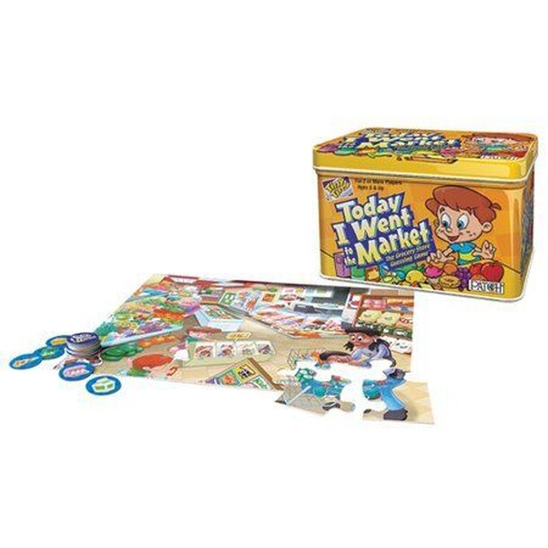 This is one of the games in the Tiny Tins series by Patch Products. This is basically a board game version of I Spy. Players look at the board and say "Today I went to the market and saw something . . ." Other players then try to guess what the player saw. If you guess correctly, you get one of the grocery tokens. If no one guesses correctly, then you get...