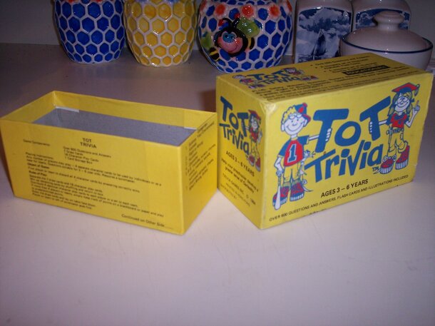 Over 600 questions and answers A complete set of illustrated Alphabet flash cards A complete set of illustrated Number flash cards (1-9) Ideal for home, or compact for travel. Game complete on its own or a great add-on to other trivia games. Large durable cards; easy to follow rules. Cards are large 3" x 5" yellow in color and have trivia designed for 3-6...