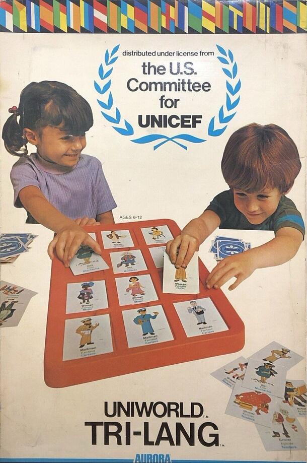 An educational game where players take turns drawing and placing cards onto the board. Players score points by completing "books" of three orthogonally adjacent cards of the same type. The player with the most points wins. The cards feature people from different countries and are written in three different languages (English, French, and Spanish). The game...