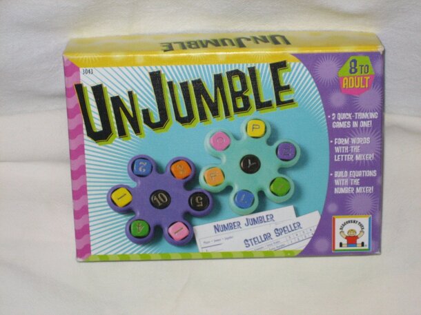 Handy 2-game set with star-shaped pocket-sized mixers. Includes 2 mixers and 2 score pads. Stellar Speller: Scramble to score the most points with words created using the seven letter cubes in the mixer. Great for both beginning and advanced spellers. Number Jumbler: Add the 2 black cubes and list the most computational combinations using the 5 colored...