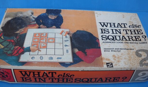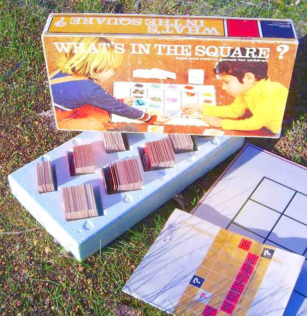 Logic and matrix games for children. "The jewel in the crown of all matrix games. The set includes 10 graded games..." Contents 4X4 matrix board with space outside matrix for a row and column of tiles on the outside edge of the matrix. 10 sets of tiles with each set containing margin "category" tiles and intersection "instance" tiles. Rule Book: 38 pgs....