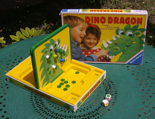 "Dotty Dragon has gone too far now. So his Aunt Dragolina has cast a spell and lots of colored spots have appeared on his face. Poor Dotty! How is he going to get rid of these spots? Only with the help of two children who simply place Dotty Dragon in the middle, and off they go! If they throw the matching color on the colored dice they can make the...