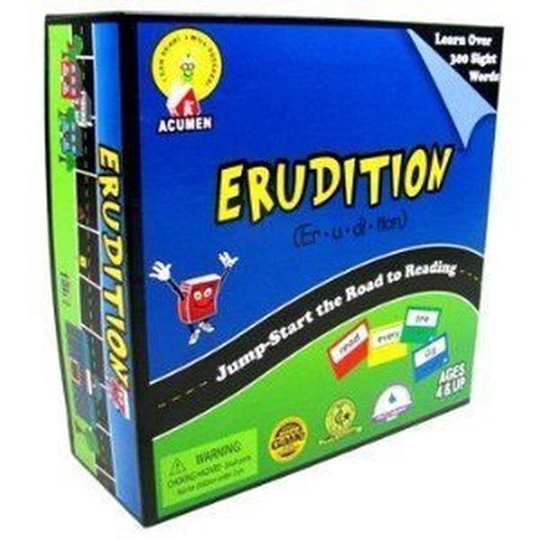 Erudition™ jump-starts the road to reading. The game takes players on a fun adventure through literacy land, complete with common land marks and street signs. You will enjoy an ice cream cone, encounter a construction site, ride a train and play on a playground. Recognize a sight word and you earn a bonus roll. Be the first player to reach the library and...
