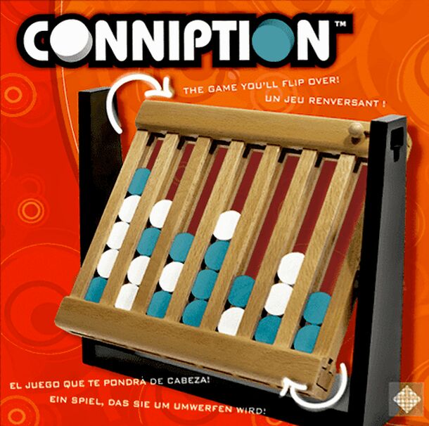 From the publisher's website: You'll be having conniption fits when the playing board is flipped upside down. Watch closely as the colored disks start tumbling into new color sequences. Will they land in winning color combinations for you, or for your opponent? Yikes! In turn, players drop their discs down the vertical slots. But first, they must decide to...