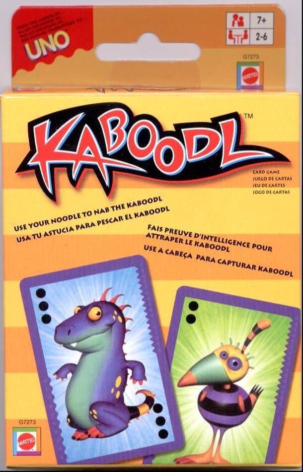 Kaboodl is played with 103 cards. The object is to collect the 12 'Kaboodl' cards from the centre and have the most at the end of play. Each Kaboodl card has a creature, a background colour and one, two or three dots on it. You can collect a Kaboodl card from the centre by matching colour, creature and dot cards from your hand. Special cards also allow you...