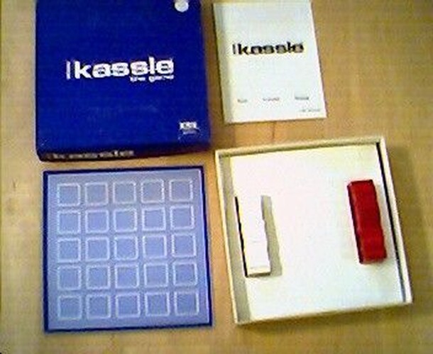 Katoi or since 2006 Katoiz consists of a 6x6 board build up with tiles. These tiles have 3 characteristics: form (square, triangle or circle), color (blue, red, green, yellow or white) and size (big or small). In the base game you try to make a stack of tiles. To move the tiles around you can move a tile horizontally of vertically if 1 characteristic with...