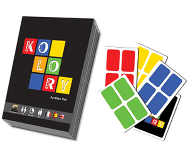 In Kolory, each player is trying to create as large a territory as possible through clever card play. To set up the game, one card showing four white quadrants is placed on the table while each player holds ten cards, with each card having four quadrants of a particular color. On a turn, a player adds a card to the playing area, laying it adjacent to other...