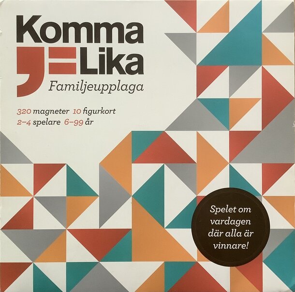 Komma Lika (Come Equally) Every time you do something for the shared household – the dishes, replace a broken light bulb, take the car to the auto shop, etc. – you get points. The points consist of triangular shaped magnets of different sizes. Each member of the household gets his/her own color, and together the different colored magnets form a nice...