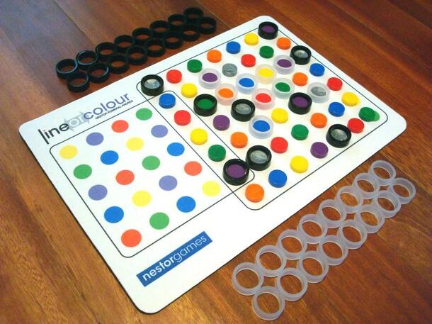 Line or Colour is a combinatorial game for two players. Originally named Tangion (a contraction for Tangent+Tension), the game involves two perpendicular winning conditions that can tie players´ brains in knots. It was derived from Domina 4 by adding a n-in-a-row victory condition and removing piece movement. The name was later changed to the more friendly...