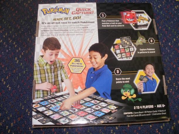 Race to catch the Pokemon! From the box: "Ready, Set, Go!" It's an all-out race to catch Pokemon! Every player plays on ever turn in this Pokemon capturing frenzy. But watch out! It takes quick reflexes and fast thinking to snag the Pokemon you need to win! Features 36 all-new Pokemon from the Black and White televesion series!" The game uses...