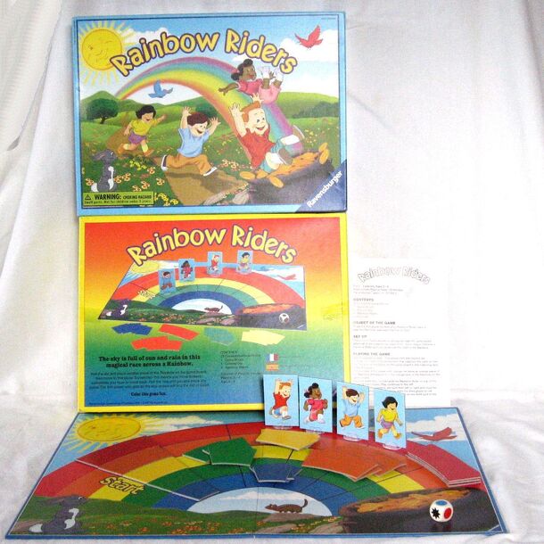 The first player to get their Rainbow Rider over the Rainbow & into the Pot of Gold wins the game. To do this, your Rainbow Rider must be on the fifth piece of the Rainbow of any colour & then you must roll that same colour again, thus reaching the Pot of Gold. (But don't stop playing ! Finish building the entire Rainbow by rolling the die until all of the...