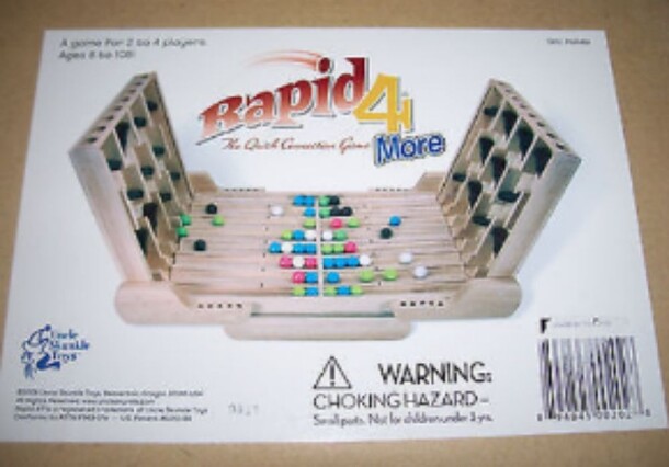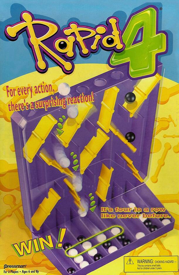 An evolution of the game "Rapid 4", "Rapid 4 More" sees players try to get four marbles in a row by dropping them into holes at the top of a vertical tray much like in Connect Four. The drop, however, is filled with levers that shift as the marble drops through them; players must drop marbles to shift the levers so as to drop marbles into scoring or...