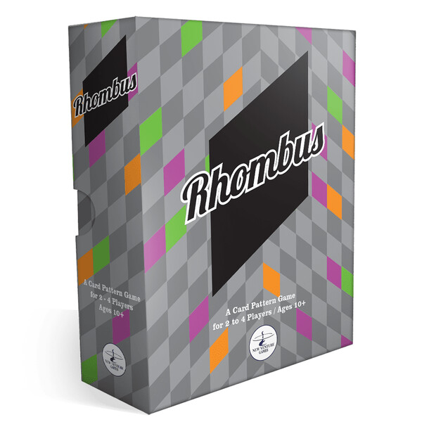 The game of Rhombus begins with a large empty table space surrounded by two to four players, and each player holds a hand of three Rhombus cards. These cards are printed with geometric shapes in several colors, and the challenge is to play these cards to the table to form diamond shapes (rhombuses). Forming such shapes in different sizes and color...
