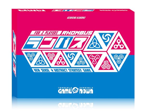 ランバス is a tile placement game where players compete for points by placing 13 diamond tiles one by one on the squares on the board. Every tile has 2 triangles drawn next to each other, and the points you get will differ depending on how many triangles of your color are connected in the end. If the number of connected pieces is "even", you can get points...