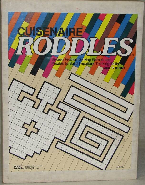 This is mainly used as educational games. Cuisenaire makes these little plastic colored rods. Each color is a different length but all of the same color is the same length. Used to teach spacial mathematics, Roddles the game is basically a set of cardboard tiles with different puzzles to be solved using the rods. Mainly designed as a single player...