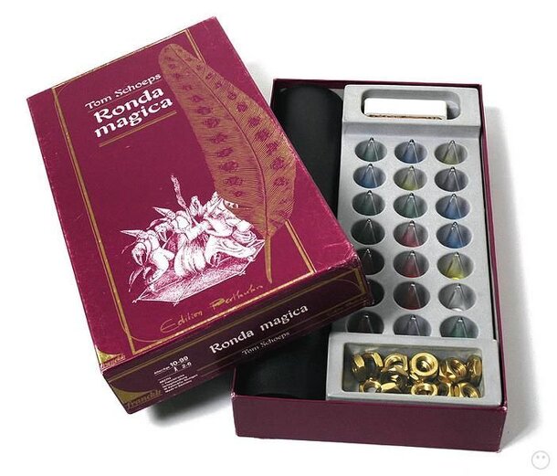 Ronda Magica takes you into a wonderful world of magic. The magicians move on the field of play as if dancing. Each time a player succeeds in setting six magicians in a circle such as is illustrated on one of his or her cards that player places this card on the table. The winner is the first player who is able to lay down 5 cards. The use of magic counters...