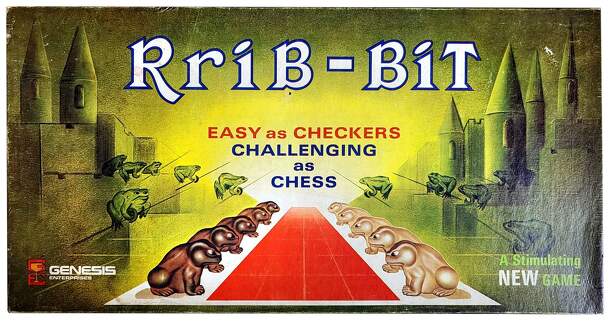 "Battle of the Frogs" On a 7x9 chessboard, the central 3x3 area is marked off as the "Arena". Each player sits at a long edge and starts with his nine frogs (hollow plastic figurines, 7 cm along their largest dimension) filling that row. All frogs move like Chess knights. Light moves first. Capture is by landing on an opposing frog and is not mandatory....