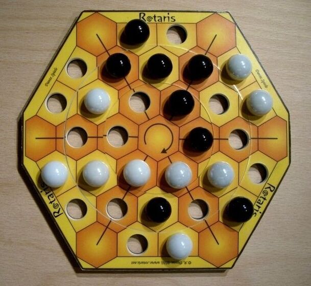 In Roshi, you will place, slide, and push pieces on the board in order to be the first to build a roshi - a 5-in-a-row that includes the roshi stone. The first player to create a roshi wins the game. On a player’s turn, complete up to two different actions: place a piece, push an opponent's piece, or slide a piece. The actions can be completed in any...