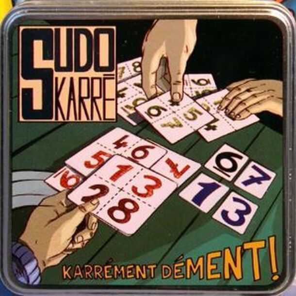 At the beginning of the round, 4 cards with different numbers are revealed in a 2x2 pattern. Each player has five two-faced cards with 4 numbers on each of them, and must use 4 of them to create, as quickly as possible, a 3x3 grid where each number is present once (just like in Sudoku) and the 2x2 pattern of numbers is present as well. The quickest player...