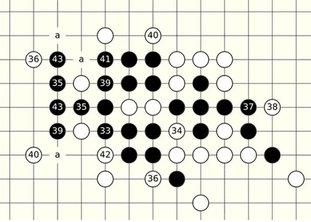 Stigmergy is a drawless territory game for two players: Black and White. It is played on the spaces (cells) of an initially empty hexagonal grid of hexagons (board). Stigmergy is based on Michał Zapała's Tumbleweed. DefinitionsTwo stones, or a stone and an empty cell, see each other if they lie on the same straight line of adjacent cells and there are no...