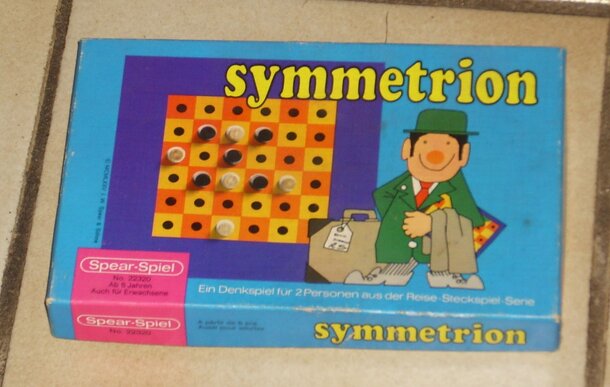 Symmetry is an abstract 2-player game. Players need to create symmetrical patterns on the board to gain territory, while simultaneously preventing the opponent from creating symmetrical patterns on the board. Symmetry can be played using a Reversi set (board+stones). The excact rules of Symmetry are as follows: -Black and White take turns putting stones on...