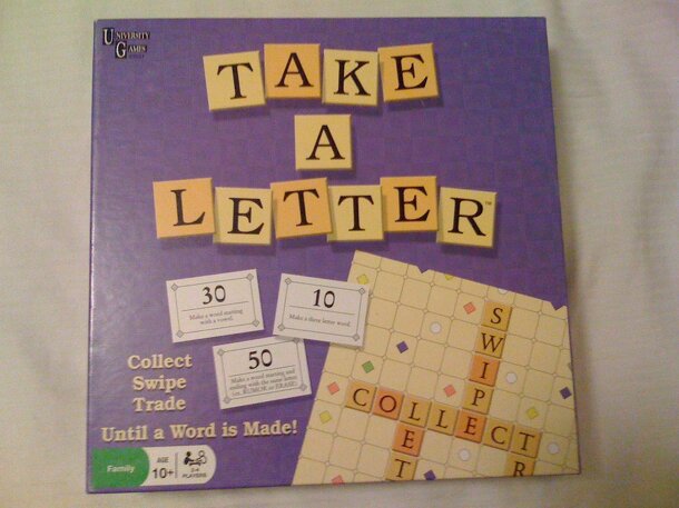 "Collect, Swipe and Trade Until A Word Is Made!" As you move around the edge of the board, you collect letters, usually two per turn. Your 3 'Word Play' goal cards specify the conditions of the word(s) you need to put together. For instance: a word of greater than 7 letters or a word starting with 'TH' or a word that uses the same vowel twice. Scores range...