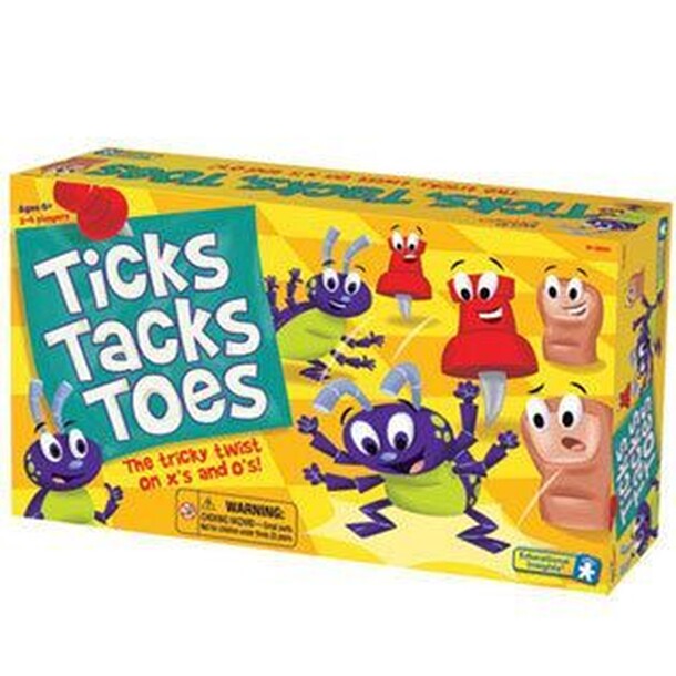 In this expanded twist on the classic Tic-Tac-Toe, players take turns placing sculpted plastic 3D ticks, tacks, and toes on the 6x6 grid. Players try to get strings of three-in-a-row (one tick, one tack, and one toe) to earn tokens. Other players can score off your moves. Earn the most tokens and win. Includes 36 ticks, tacks, and toes plus a colorful 6x6...