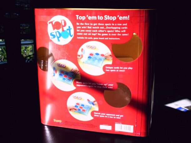 Top This! is a fun-filled, strategic board game of pizza making for 2 to 5 players. Manage your toppings and flick them skillfully to win! Players take turns flicking wooden "pizza topping" pieces onto a pizza-like game board. Their goal is to position toppings so as to fulfill orders precisely, while managing their inventory of toppings. Players can earn...