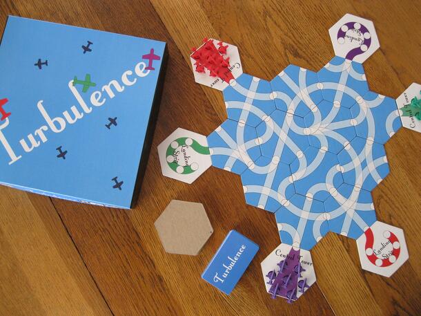 In the dice game Tulpenfieber, you want to complete a particular pattern in your tulip field first to win. Each player starts with a game board that's five rows deep, with each row having seven field spaces, each depicting one or more arrangements of dice; the lower the row, the more dice depicted in an arrangement. Three fields start with tulips on them....