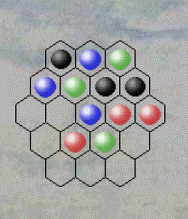 Played in a HexHex board of size 10, starting with a pattern of neutral stones already in place. A Go-like game where neutral stones are movable and remove liberties of both player's groups. On his turn the player either (a) slides a neutral stone over a line of empty hexes, and then drops a friendly stone, (b) drops a friendly stone, or (c) passes. After...