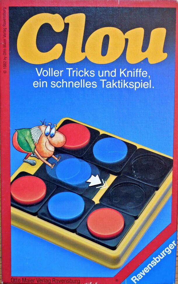 Make-Shift / Clou is an abstract game that looks a lot like Tic-Tac-Toe. The board is a 3x3 grid with 8 tiles that can slide inside the board with spaces on top for player pieces, which are colored plastic disks. The object of the game is to complete a row, column or diagonal of three of your own pieces. However each player only has 3 pieces and the 3 x 3...