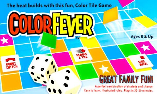 From the Back Cover: Colorfever is point scoring game combining a perfect blend of strategy and chance. You draw tiles, roll the dice, and place your tile accordingly. You score by building strings of tiles horizontally, vertically and diagonally. With every turn comes the chance to draw special tiles that give you extraordinary action! Players take turns...