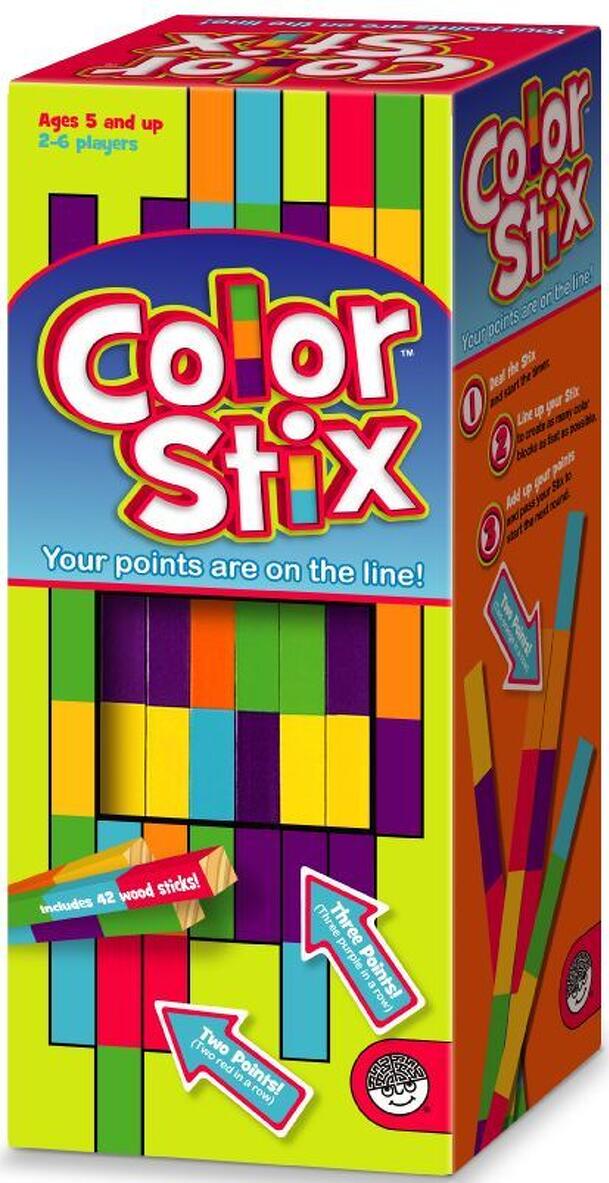 Qwirkle designer Susan McKinley Ross offers a new take on pick-up sticks, one that might be called "pick up the sticks, then put them down again in a pleasing arrangement" but is thankfully better titled Color Stix. Color Stix includes 42 brightly-colored sticks – with seven colored rectangles on each stick – along with a 90-second timer. In the first...
