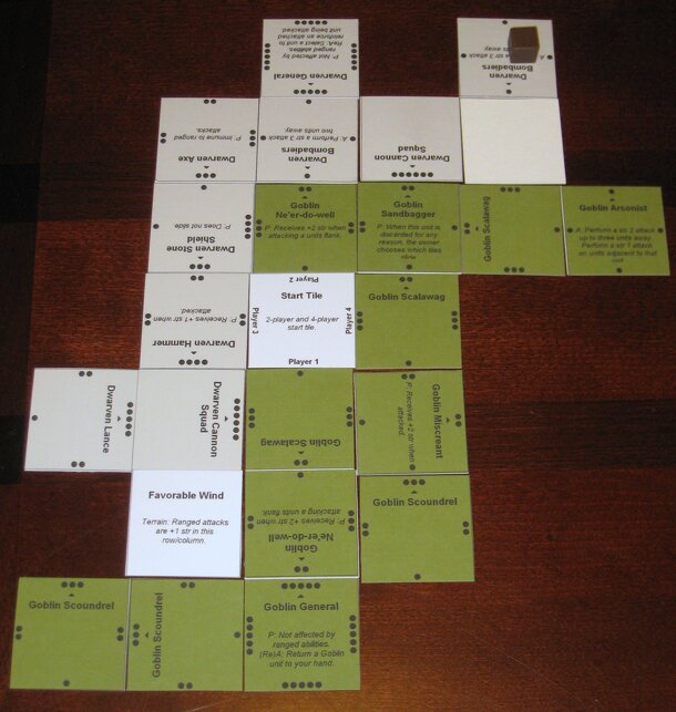 March of War is a game of fantasy combat between distinct racial armies for between two and four players. Each player commands one of the armies in an attempt to conquer his foes in an ultimate bid to best the opposing player's generals. Units are represented by square tiles, which list the unit's combat strength in each direction, as well as any special...