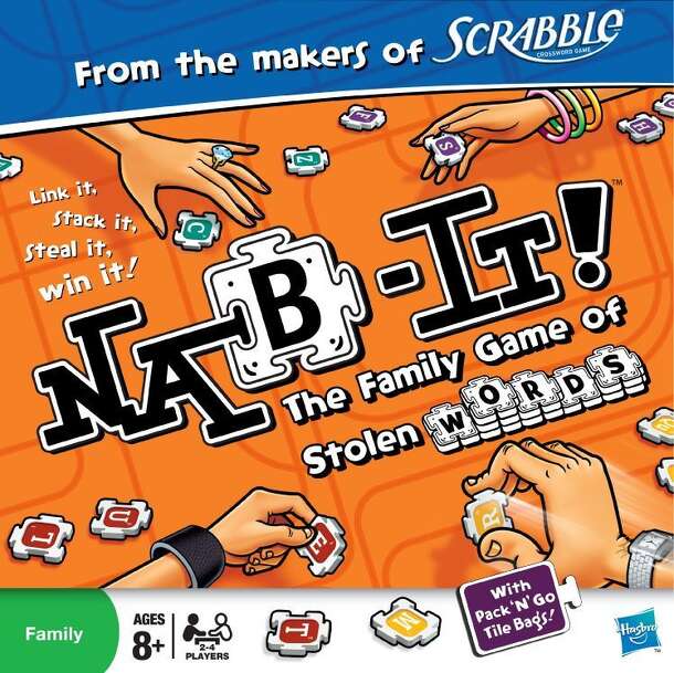 Nab-It! is reminiscent of the word game Upwords in that players can stack letter tiles on existing letter tiles in order to create new words, but there are three differences: (1) the game includes no board, (2) each player has her own set of tiles in a particular color, and (3) the player who has the highest or most tiles in a word scores one point for...