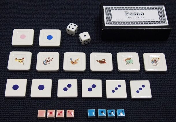 Paseo is a dice-rolling race game akin to backgammon. Players create a starting board at the beginning of the game. Paseo is published in two editions: one with ceramic tiles and another with paper tiles. Each edition includes a Zodiac A and Zodiac B version with differently colored pieces and tiles, allowing for games with up to four players if the two...