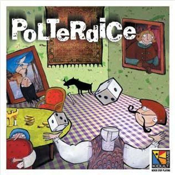 Polterdice is set in a haunted mansion in which treasures have been stashed away by ghosts. Players move their men ("meeples", if you will) up sets of stairs hoping to be the first to reach the top of the staircase. Which staircases you can move up and how much you can move are determined by rolling 8 dice and combining them into pairs. When one of a...