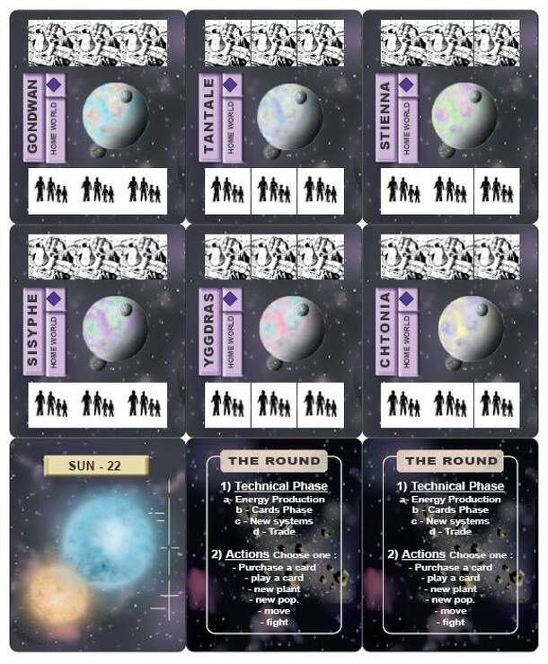 From the designer's website: "'Time Mark 10487: The discovery of the Stellarium and its tremendous energetic properties plunges the solar system Solarii into a turmoil. Long haul space travel is finally possible. "'Time Mark 10495: Using this new technology, probes are sent throughout the Galaxy seeking new worlds. The powerfull Environmental Leagues...