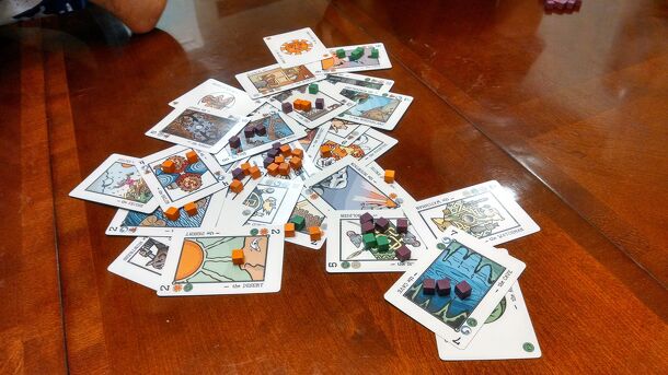 Players are scholars and scribes poring over (studying, scribbling, erasing, more scribbling) an ancient manuscript. By playing cards to the free-form play area and then placing cubes on them to record their contributions, they hope to have their work be recognized by the Queen at story time. Scoring is similar to Acquire, where the person with the most...
