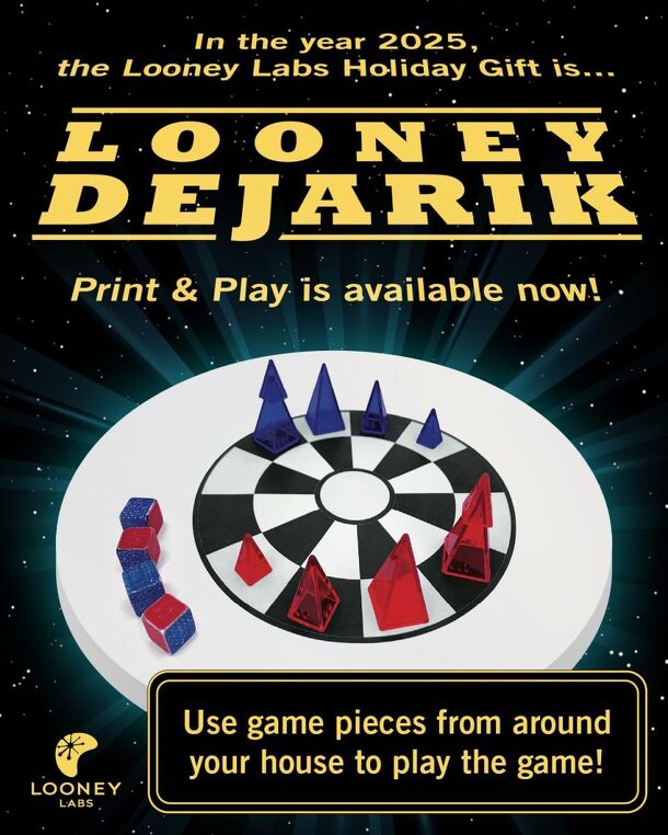 A version of the holographic game played by R2-D2 and Chewbacca in Star Wars. Playable with Looney pyramids, or pieces built from Lego blocks, existing Dejarik pieces, or other easily improvised pieces. Each player has 4 pieces (with values 1, 2, 3, 4) in their player color. The simple board is easy to print or draw by hand. 4 randomizing cubes or tokens...