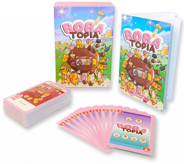 The ultimate Taiwan Comfort Food card game, set in the world of Bobatopia, the place where Taiwanese street food comes to life! In Bobatopia, everyone deserves a heartful meal. Play with friends and enjoy savouring the best comfort street food with a twist! —description from the publisher Players take turns drawing cards depicting popular Taiwanese street...