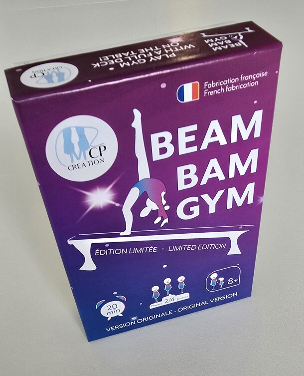 Beam Bam Gym is a strategic card game about women’s artistic gymnastics. Build routines across apparatus and maximize your score with competition-inspired mechanics. A fun and educational bilingual (FR/EN) game for ages 8+. —description from the publisher Beam Bam Gym est un jeu de cartes stratégique sur la gymnastique artistique féminine. Composez des...
