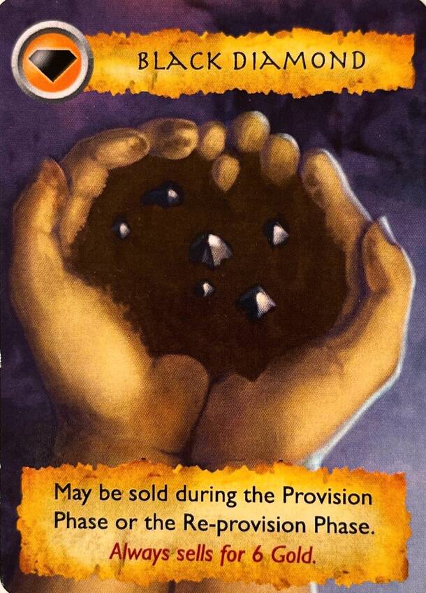 Black Diamond is a promo card for DIG: the Card Game that can be added to the deck for more game play variety. Simply shuffle the card into the starting deck and play. The pertinent rules are included on the card itself. Card Text: Always sells for 6 Gold Coins; do not shuffle back into the Mine Deck. Note: The Black Diamond is a once-per-game find, adding...