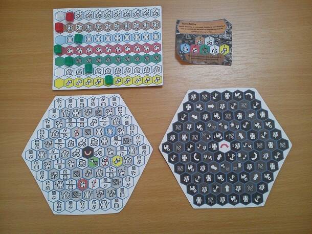 Modern Times: Wheels of Industrialization is a Eurogame styled boardgame, bordering with a puzzle. IT uses resource management combined with the board rotation mechanic. Player’s goal is to build from one to three factories using resources available or produced in ever changing environment. But be warned, each production comes with the price. And there are...