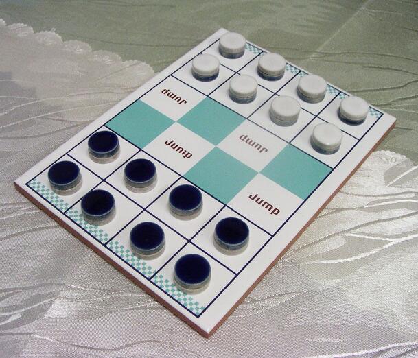 Each player places eight pieces in the two positions in front of him. The first player and the second player take turns moving one piece at a time. Pieces can move forward and diagonally one square. They cannot move sideways or backward. If there is a piece (friend or foe) in the direction of advance, the player can jump that piece to advance. You can jump...
